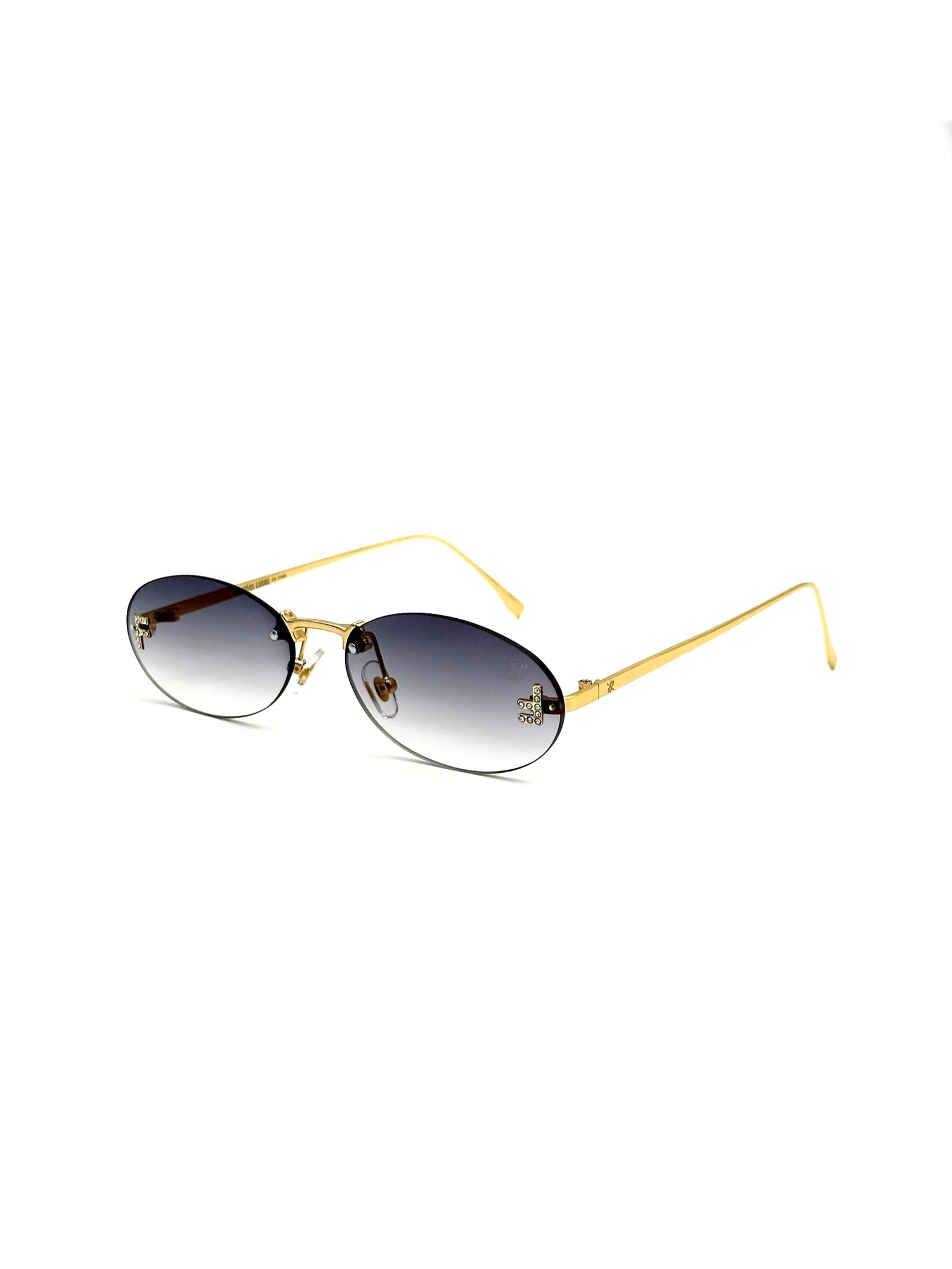 Montura Glasant: Metal color Oro con Detalles de letras en brillantes y final en Oro.